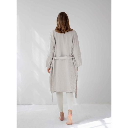 This linen bathrobe is made from 100% European linen. The linen has been pre-washed, giving it an immediately soft and comfortable feel. The dressing gown has pockets at the front and a tie belt. This bathrobe is unisex and available in sizes S/M and L/XL.